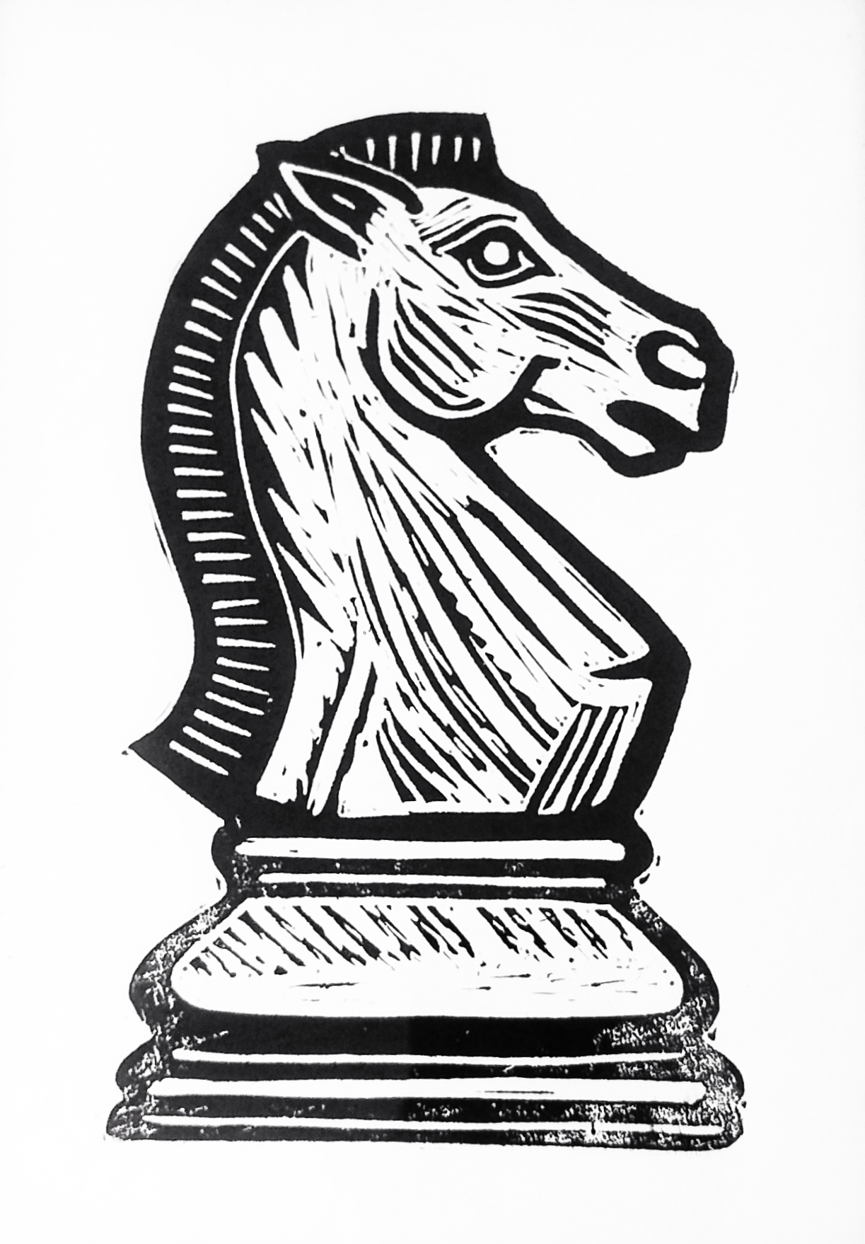 A peça "Cavalo Peça de Xadrez" é uma linogravura original feita por Uilo Andrade, integrante da Coleção Jogus, criada em 2025. Trata-se de uma arte impressa em tamanho A4, que destaca o estilo detalhado e marcante da linogravura, técnica tradicional que utiliza cortes em matriz de linóleo para produção da imagem.